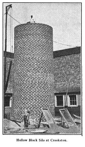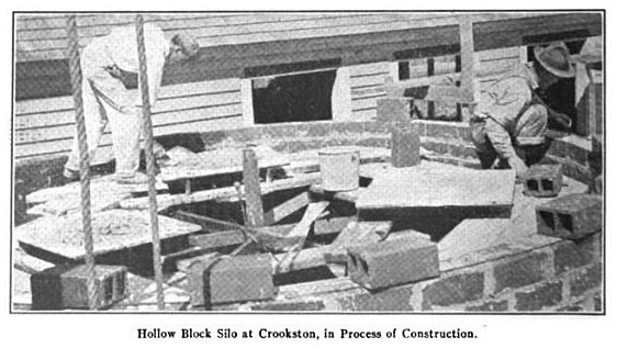 A hollow clay-block silo was completed early in August. The brick work was done by Mr. Edward Starz, of Zumbrota Falls, who had gained valuable experience in constructing a similar silo for Mr. J. J. Sprenger, of that place, and for others. The time for the entire work was 11 days. The method of constructing such a silo is given quite fully by Mr. Sprenger, on page 252 of Institute Annual No. 23 (1910). The cost of our silo is the only information, therefore, that is needed. We shall be glad to answer inquiries regarding our silo at any time.